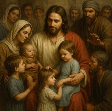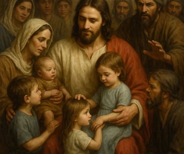 Then He took the children in His arms, placed His hands on them, and blessed them.